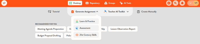 Generate Assignments – Use this to make assessments, practice tasks or other engaging activities for your students.