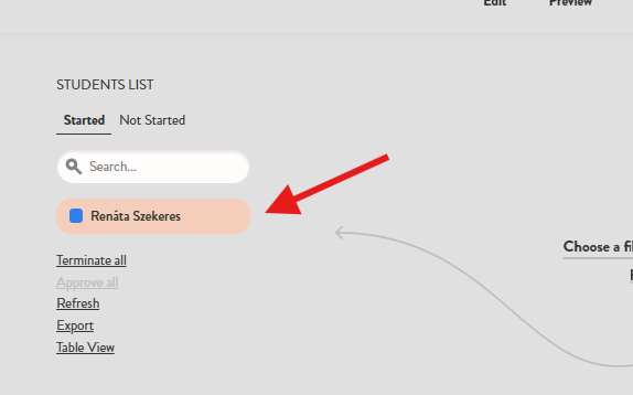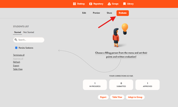 To do this, navigate to the Evaluate menu of the worksheet and select the student you wish to evaluate.