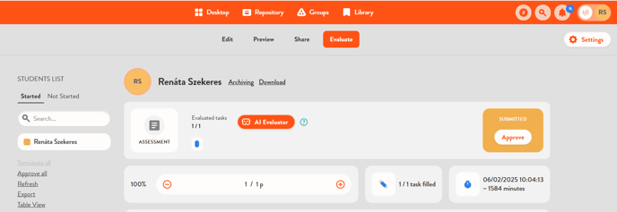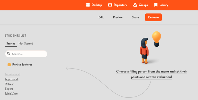 First, head over to the Evaluation page, where you can see your students' performance. You can also access this through the Groups menu.