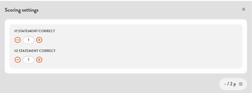 As a last step save the task and go to the scoring settings. At the scoring settings enter the points assigned to each statement. Since you determine the points for each statement in this task type, some statements can be worth more points than the others.