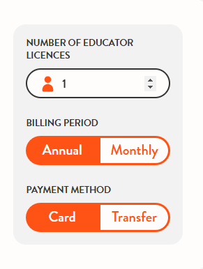 If you want to order one of the subscription packages, select the appropriate one and click on the Start your free trial button. On the ordering interface, you can still switch between the monthly-annual and school-business options, and here you can specify exactly how many people are included in the subscription package too. The great advantage of the ordering page is that the page makes a preliminary calculation based on the set parameters, so you can assess the various options and the related prices yourself before placing the order.