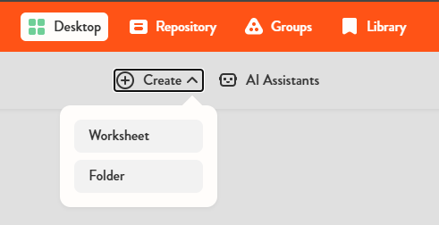 In the drop-down list, you will find your existing folders and the option Not in a folder. If you want to organise the worksheet into a new folder, go to the Desktop menu, where you can create new folders by clicking the Create button at the top. Once created, the new folder's name will also appear in the list for sorting folders.