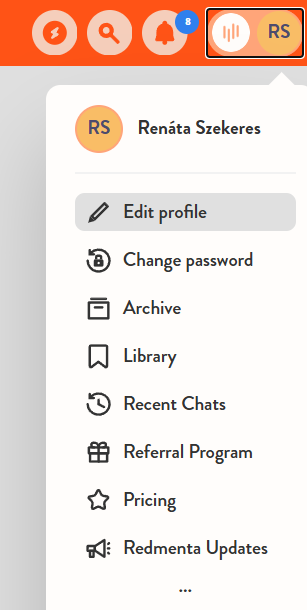 Look to the upper right-hand corner of the screen. You’ll see your profile monogram (usually the first letter of your name). Click on it to open the dropdown menu.