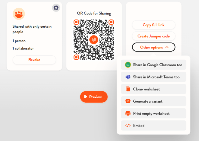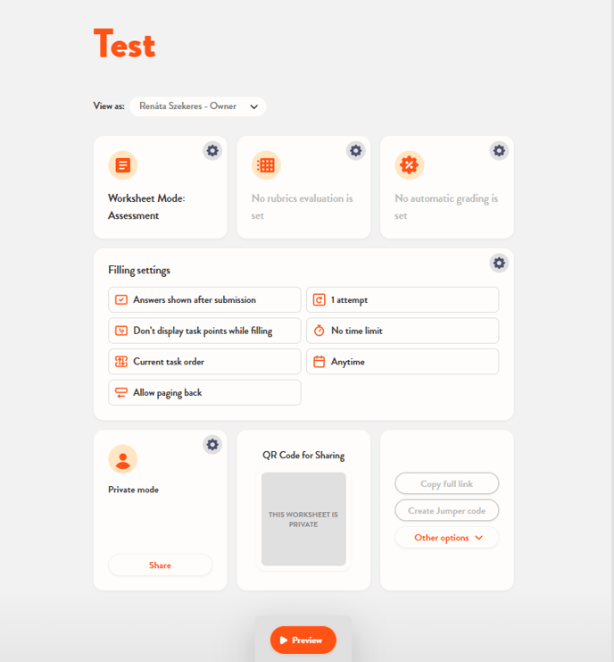The Preview page of the worksheet allows you to customize various settings before sharing it with students. This article will guide you through the different options available and how to configure them.