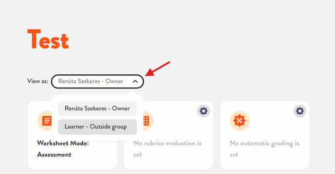 You can first choose the mode you are in—whether you want to view the worksheet as a teacher or as a student. This allows you to see the worksheet from different perspectives and ensure everything is set up correctly before sharing it. To change it, just click on the arrow and choose your preferred view mode.