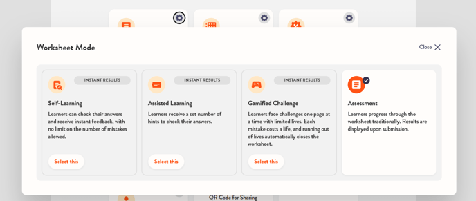 You can choose the way how students get feedback on their performance (e.g. immediately or in a gamified way). You can read more abut worksheet modes here!