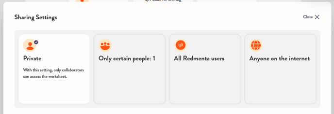 By deafult, the sharing settings are set to private, so by clicking on the settings icon, you can share it with your students: