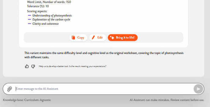 Just like with the Assistant feature, you have the option to make any changes to the generated variant if needed. You can modify questions, add new ones, or adjust the difficulty level. It's totally flexible!
