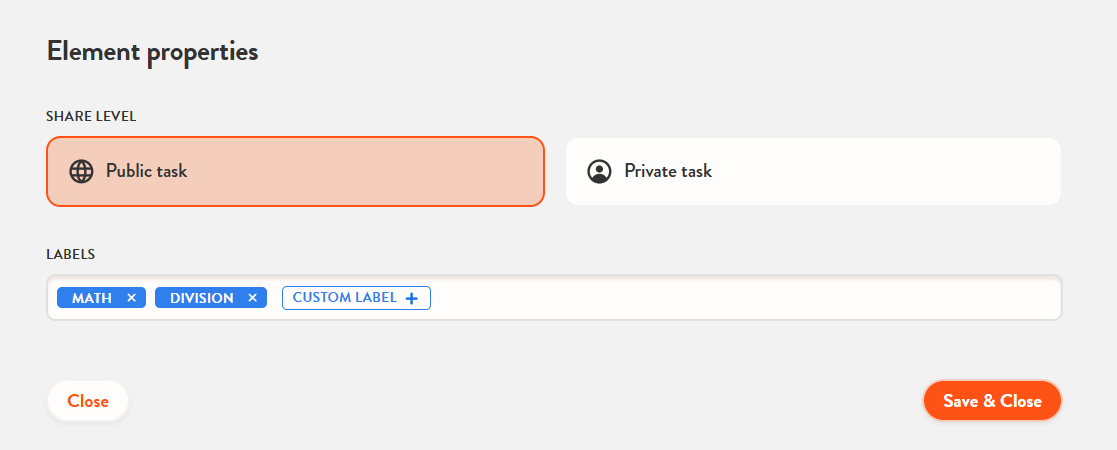 Tagging is done at the bottom of the task editor, where you can enter the task's unique labels in the field provided. It's important to use clear labels that are closely related to the task, so that you can easily access them later, and users of tasks that are set to public will be able to navigate more easily among the tasks too.