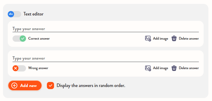 También puedes elegir si las opciones de respuesta que ingreses deben aparecer en el orden que configuraste al editar o en orden aleatorio al completar la tarea. Por defecto, las respuestas se muestran de forma aleatoria. Puedes cambiar esto a un orden fijo haciendo clic en la casilla debajo de las respuestas.