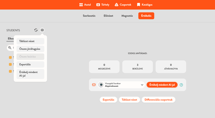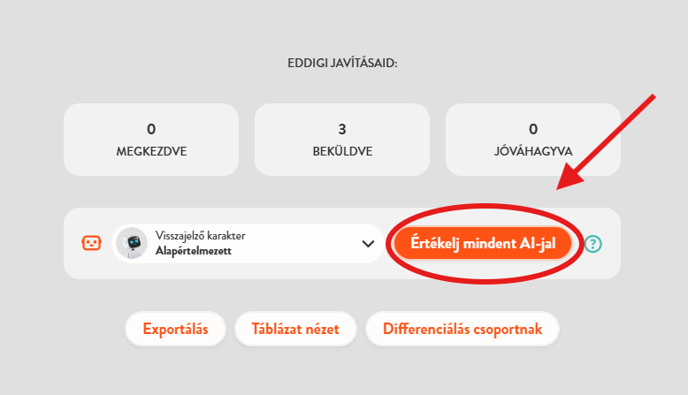 Ha változtatsz a visszajelző karakteren vagy a diák válaszán, egyszerűen kattints az „Értékelj mindent AI-jal” gombra az értékelések felülírásához.