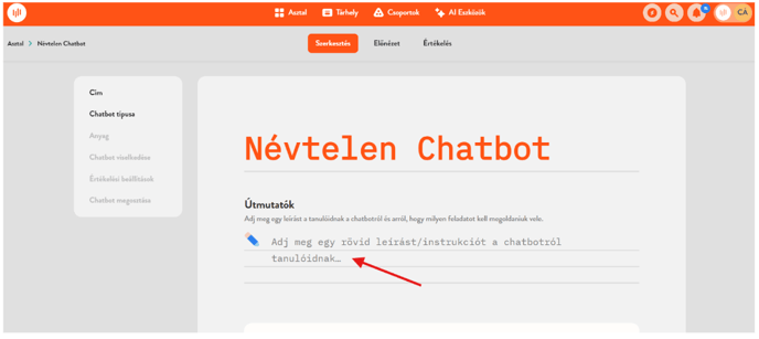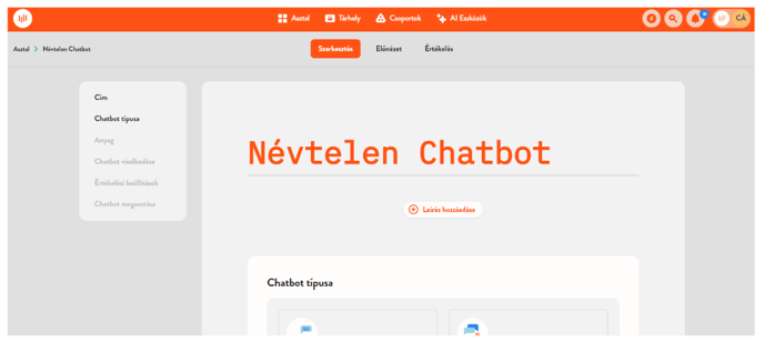 Ez átirányít a Chatbot szerkesztő oldalára, ami hasonlít a hagyományos feladatlap szerkesztőfelülethez.