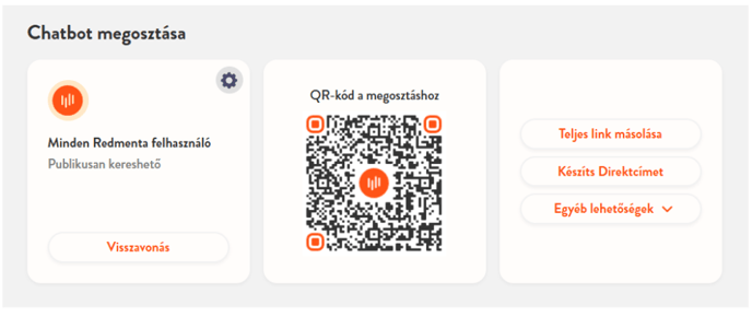 A chatbotot megoszthatod diákjaiddal, a szerkesztőfelület alján lévő mezőre kattintva. Használhatod a linkes, a QR kódos vagy a direktcímes megoldást is.