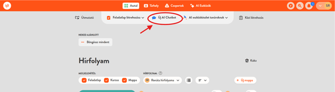 Az új chatbot szerkesztőt az Asztalon találod, közvetlenül a Feladatlapok létrezhozása mellett.