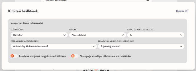 - Kitöltési alkalmak száma – Határozd meg, hányszor próbálkozhat a diák a feladatlap kitöltésével.