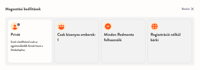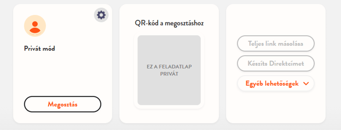 Alapértelmezetten a megosztási beállítások privát módra vannak állítva. A beállítások ikonra kattintva azonban megoszthatod a feladatlapot a diákjaiddal.