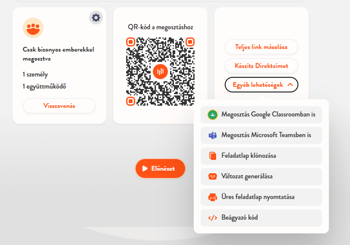 Akár kézzel készíted a feladatlapot, akár mesterséges intelligencia segítségével generálod, a megosztás előtt az Előnézeti menübe kerülsz. Ha AI asszisztenst használsz a feladatok létrehozásához, közvetlenül a feladatlap elkészítése után erre az oldalra irányít a rendszer.