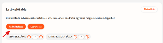 Meglévő szempontrendszer-fájlt is feltölthetsz a Fájl feltöltése gombra kattintva.