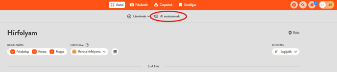 Miután bejelentkeztél a Redmentára, és az Asztal menüre lépsz, a képernyő tetején megtalálod az AI asszisztensek menüt. Kattints rá, hogy megtaláld az összes asszisztenst egy helyen, az AI Asszisztens Központban.