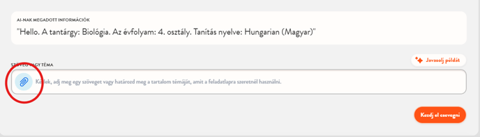 Képeket, dokumentumokat, audió fájlokat vagy videókat is feltölthetsz, amelyeket az AI referenciaként használhat, ha rákattintasz a Csatolmány gombra.