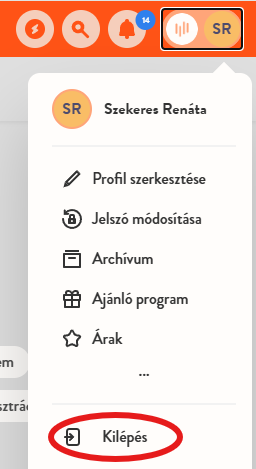 A fiókból való kilépéshez kattints a jobb felső sarokban található gombra, majd a legördülő menüsor utolsó (kilépés) elemét válaszd, ahogy azt a képen is jelöltük.