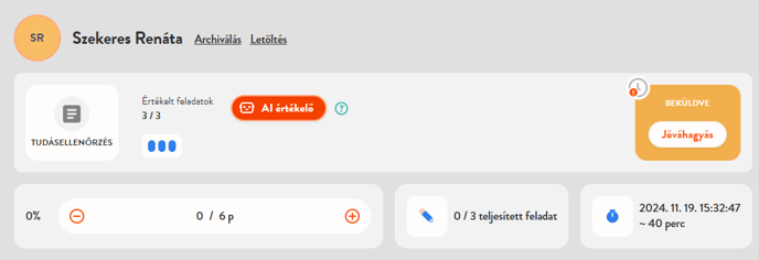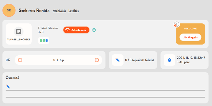 Ha rákattintasz az AI Értékelő gombra, az AI javasol egy összegzést, amely a diákok teljesítményének elemzésén alapul. Ha szeretnéd, saját összegzést is írhatsz helyette.