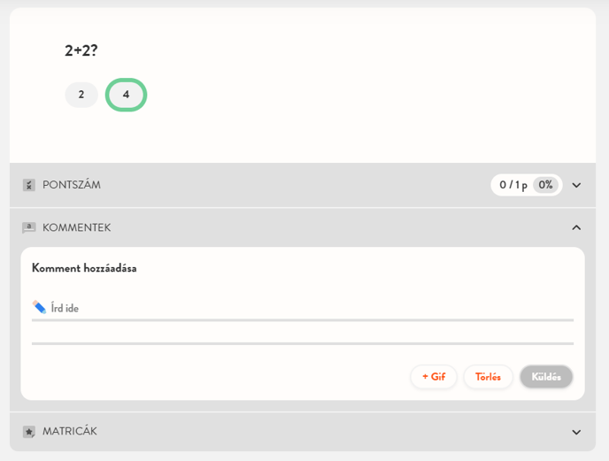 A Redmentán GIF-ekkel, matricákkal és kommentekkel is adhatsz visszajelzést a kitöltőknek, amivel inspirálhatod és bátoríthatod diákjaidat! Próbáld ki Te is a visszajelzés ezen formáit!