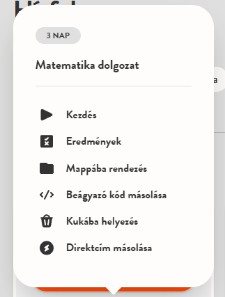 Ha a javítás is érdekel, kattints egy ilyen feladatlap Eredmények menüjére. Ha többször is kitöltötted az adott feladatsort, kattints annak a sorszámára, melynek a javítása érdekel.