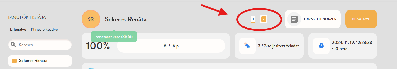 - a teljes eredmény a jóváhagyás után (ilyenkor meg kell várni, hogy a tanárod ellenőrizze a megoldásod és csak ez után, azaz a jóváhagyása után tekintheted meg az eredményeidet és a javítást)