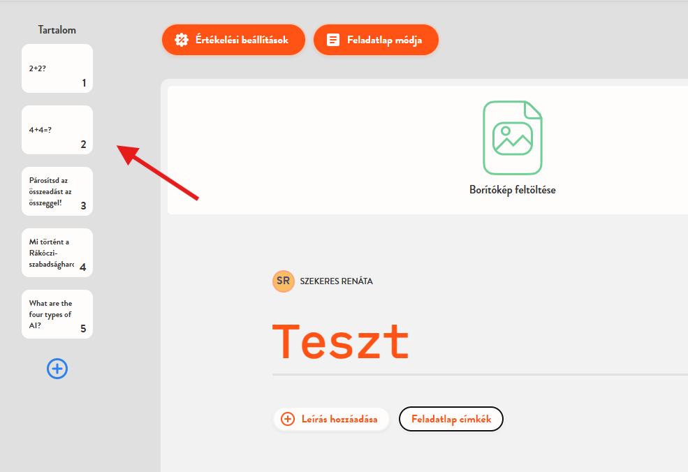A rendezősávban a feladatok instrukcióját tartalmazó kis négyzeteket találod. A módosításhoz kattints a feladathoz tartozó négyzetre és tartsd lenyomva, míg a megfelelő helyre húzod. Ugyanezt a technikát az oldaltörések áthelyezésénél is alkalmazhatod.