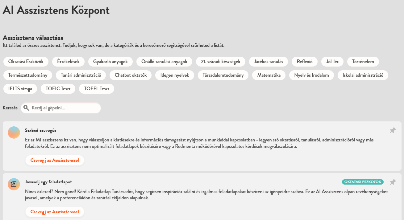 A Redmenta a papíralapú feladatlapok legnépszerűbb feladattípusait lefedve, olyan multimédiás segédeszközökkel és készségfejlesztő feladattípusokkal egészül ki, amelyek segítik a számonkérés gördülékenységét, sokszínűségét és a diákok analitikus gondolkodásának, kognitív képességeinek és kreativitásának fejlesztését. Ilyen eszközök közé tartoznak a kép, videó és egyéb csatolmányok, illetve YouTube linkek hozzáadása. A Redmenta több mint 70 egyedi AI asszisztenst kínál, amelyek segítenek abban, hogy még érdekesebb feladatlapokat készíthess.