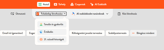 1. Feladatgenerálás – Ezt használhatod dolgozatok, gyakorlófeladatok vagy más érdekes tevékenységek készítéséhez a diákjaid számára.