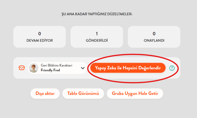 Geri bildirimin üslubunda ya da öğrenci yanıtında bir düzenleme yaparsanız, değerlendirmeyi yeniden çalıştırmak için “Yapay Zekâ ile Değerlendir” butonuna tıklamanız yeterlidir.